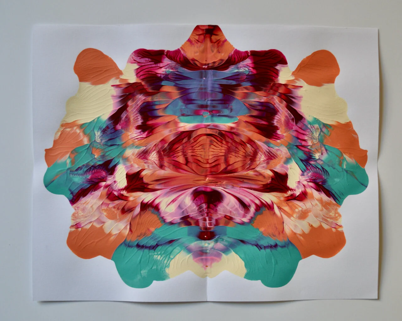 Initially, what I saw when I looked at this inkblot was so clearly a lion or tiger. After revisiting it hours late, I am seeing more - specifically, a brain with ridges and veins. It’s very psychedelic.