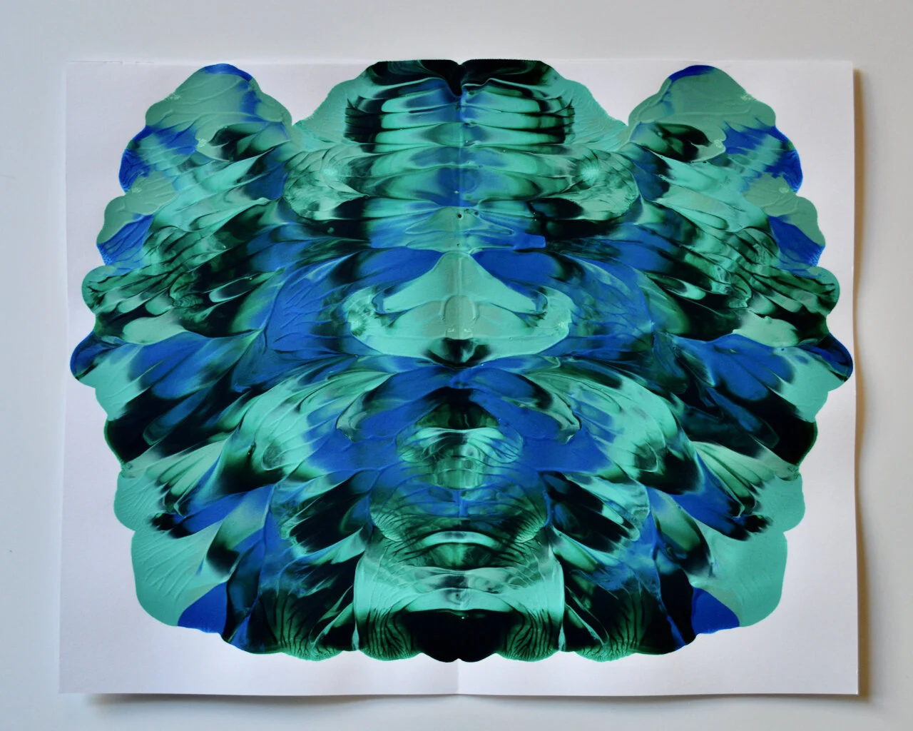 When I lifted the paper, a small air bubble popped and created a hole in the center of the “forehead” which I found an interesting detail.