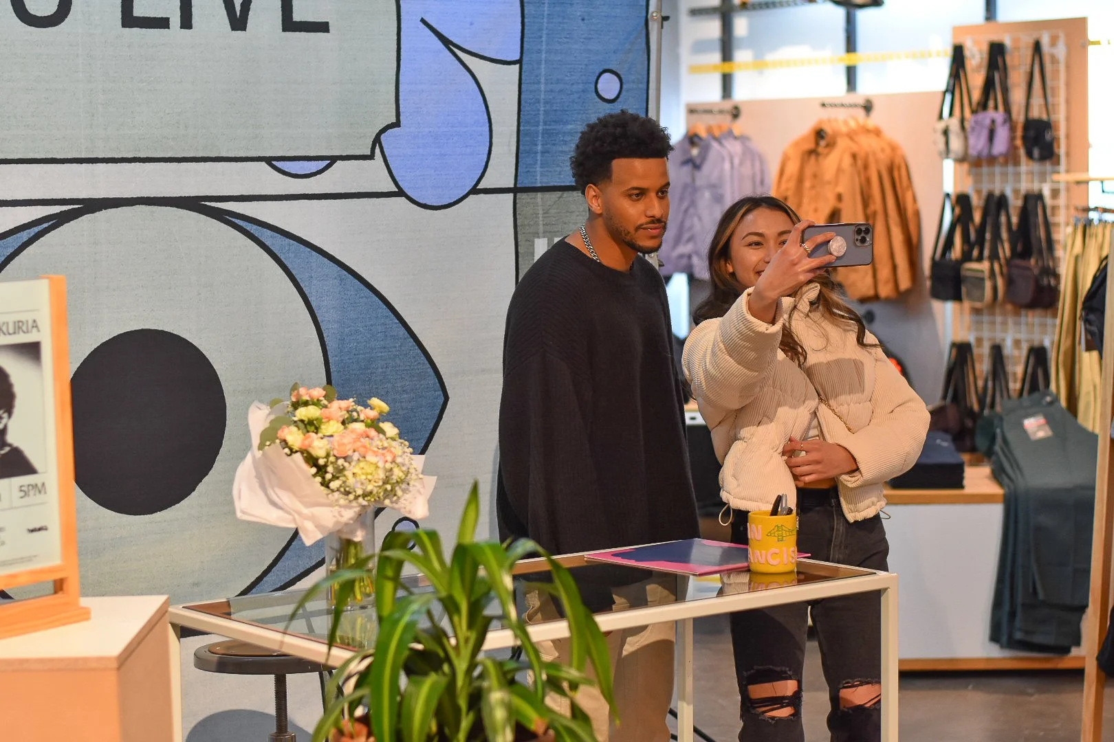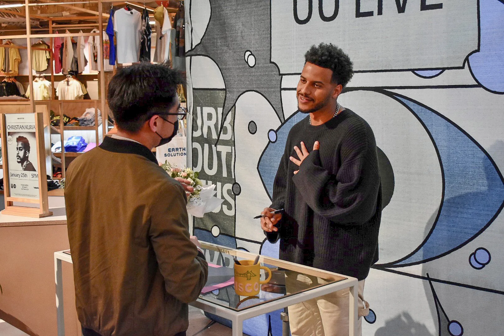 R&B star Christian Kuria appeared at his homework Urban Outfitters in the Union Square neighborhood of San Francisco for an in-store meet and greet. Christian took selfies with fans and signed copies of his UO exclusive vinyl and graphic tee.